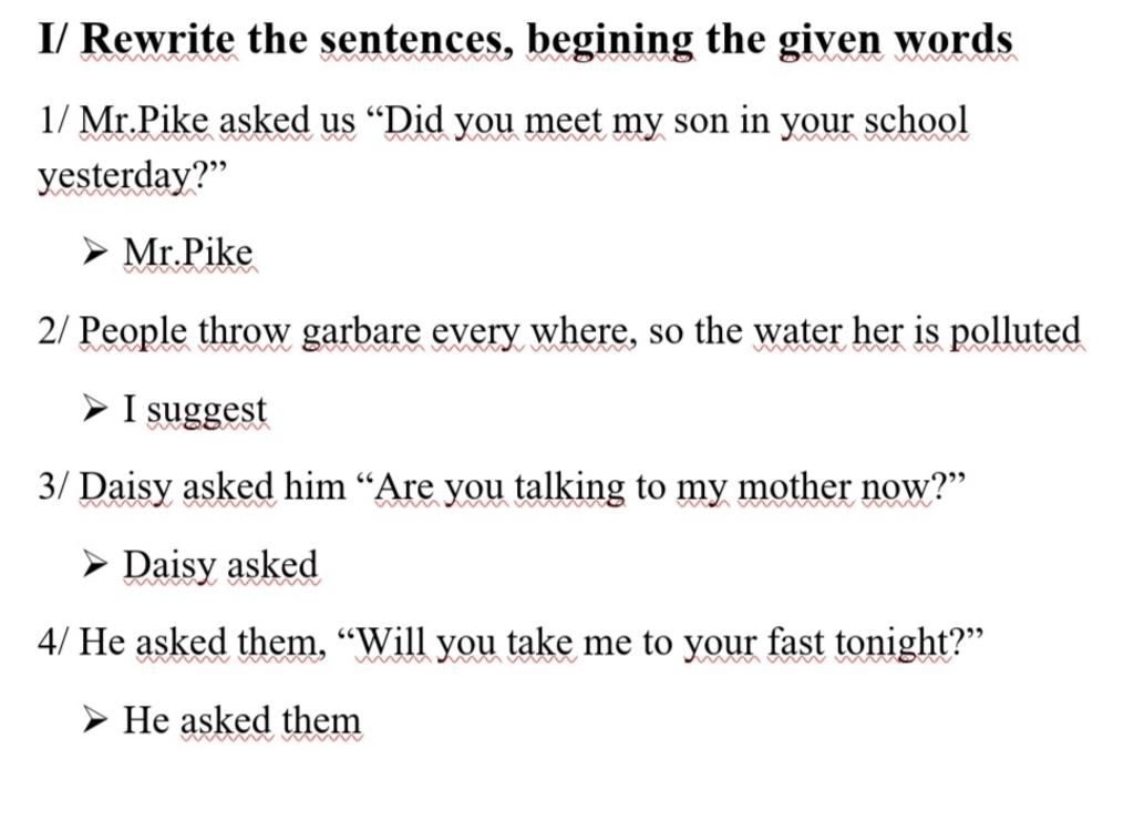 1. Mr.Pike asked us if we had met his son in their school the day before.