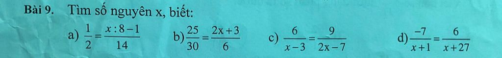 b)$\frac{25}{30}$ =$\frac{2x+3}{6}$