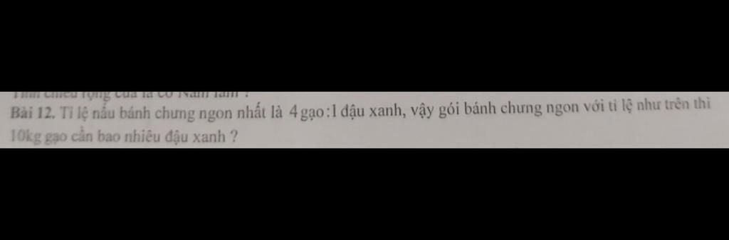 Gọi số đậu xanh cần để nấu bánh chưng ngon cho `10kg` gạo là `x(kg;x > 0)`