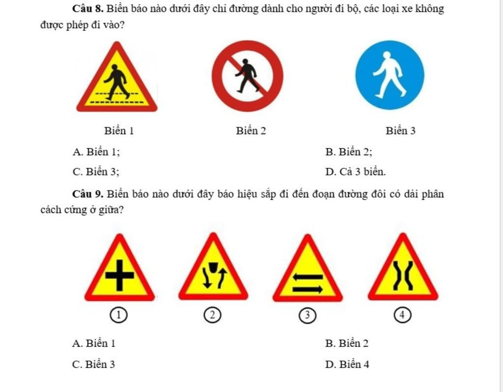 Biển báo nào dưới đây báo hiệu sắp đi đến đoạn đường đôi có dải phân cách cứng ở giữa là biển số 2