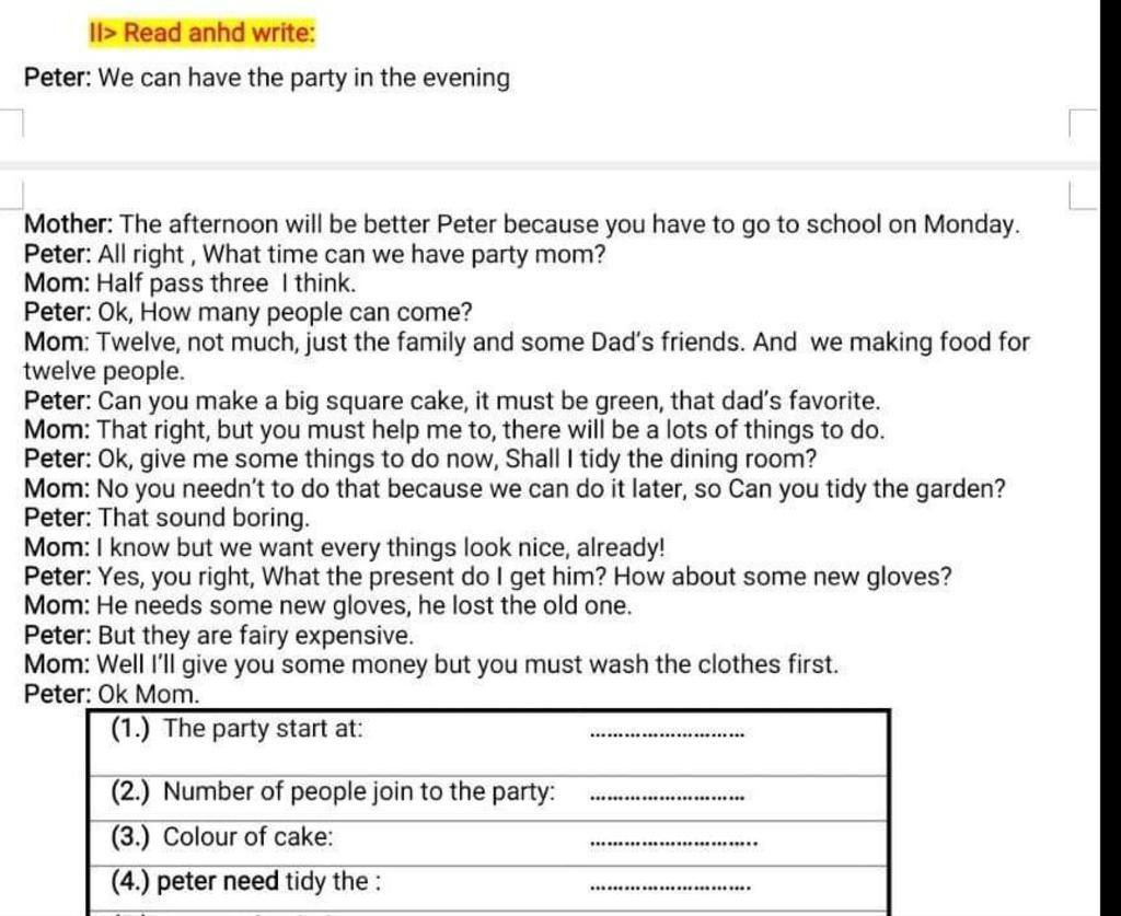 Sau đó cậu bé hỏi là bao nhiêu người đến thì ng mẹ bảo là twelve =>câu 2 là twelve