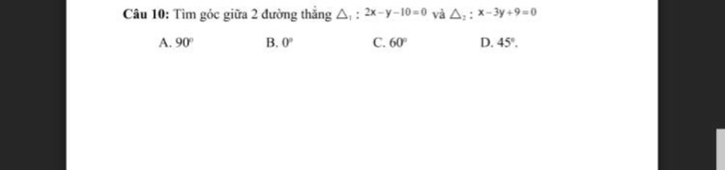 Đáp án: $\widehat{(\Delta_1; \Delta_2)}=45^{\circ}$