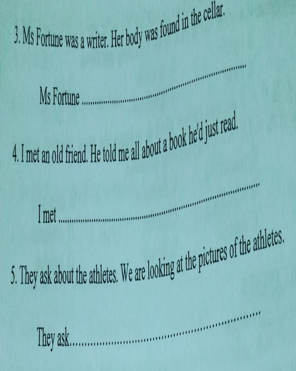 `1.` Ms. Fortune, whose body was found in the cellar, was a writer.