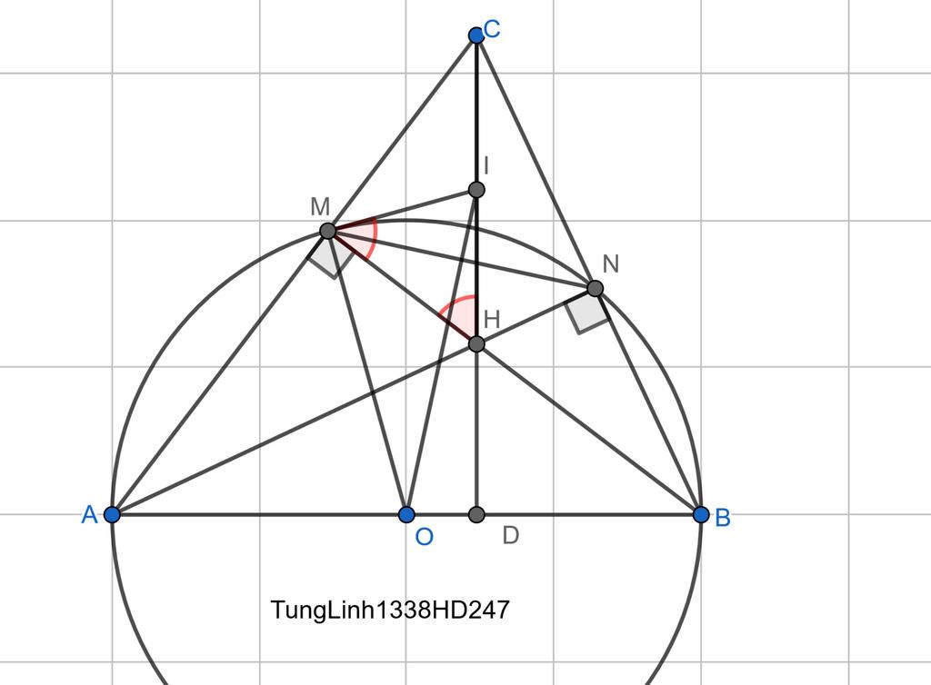 Từ (3) và (4) ⇒ ∠OMB + ∠HMI =90 độ