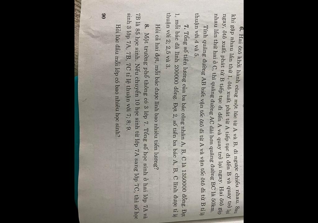 Mà chuyển `10` học sinh từ `7A` sang `7C` và lớp `7A, 7B, 7C` tỉ lệ thuận với `7,8,9`, ta có:
