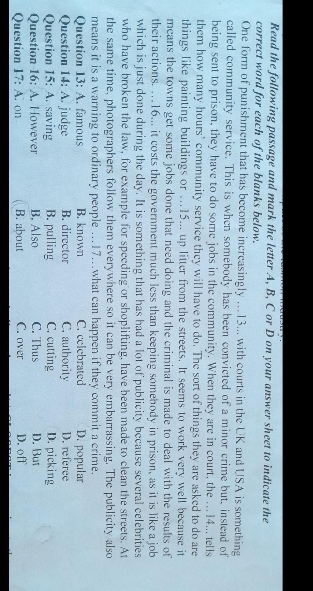 `2.` B ( sau mạo từ the cần một danh từ ; judge (n) : thẩm phán )
