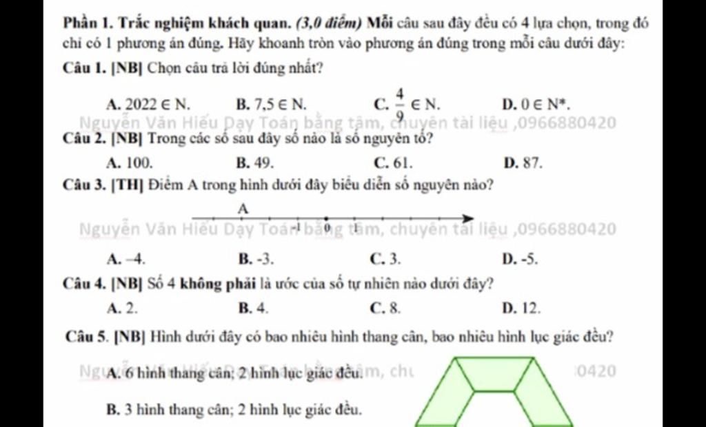 Câu 1: A