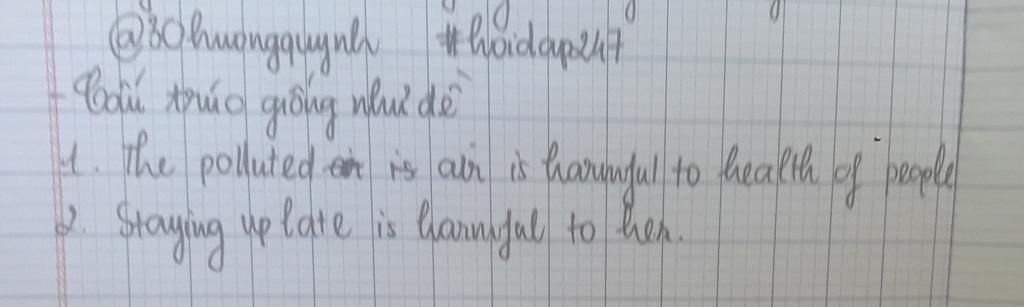 $1$ câu với cấu trúc : $"$ tobe harmful to S.O/S.T $"$
