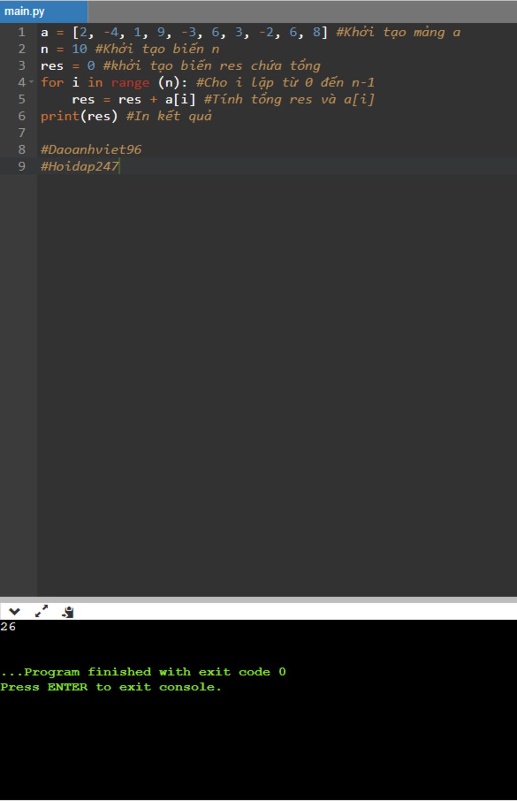 a = [2, -4, 1, 9, -3, 6, 3, -2, 6, 8] #Khởi tạo mảng a
