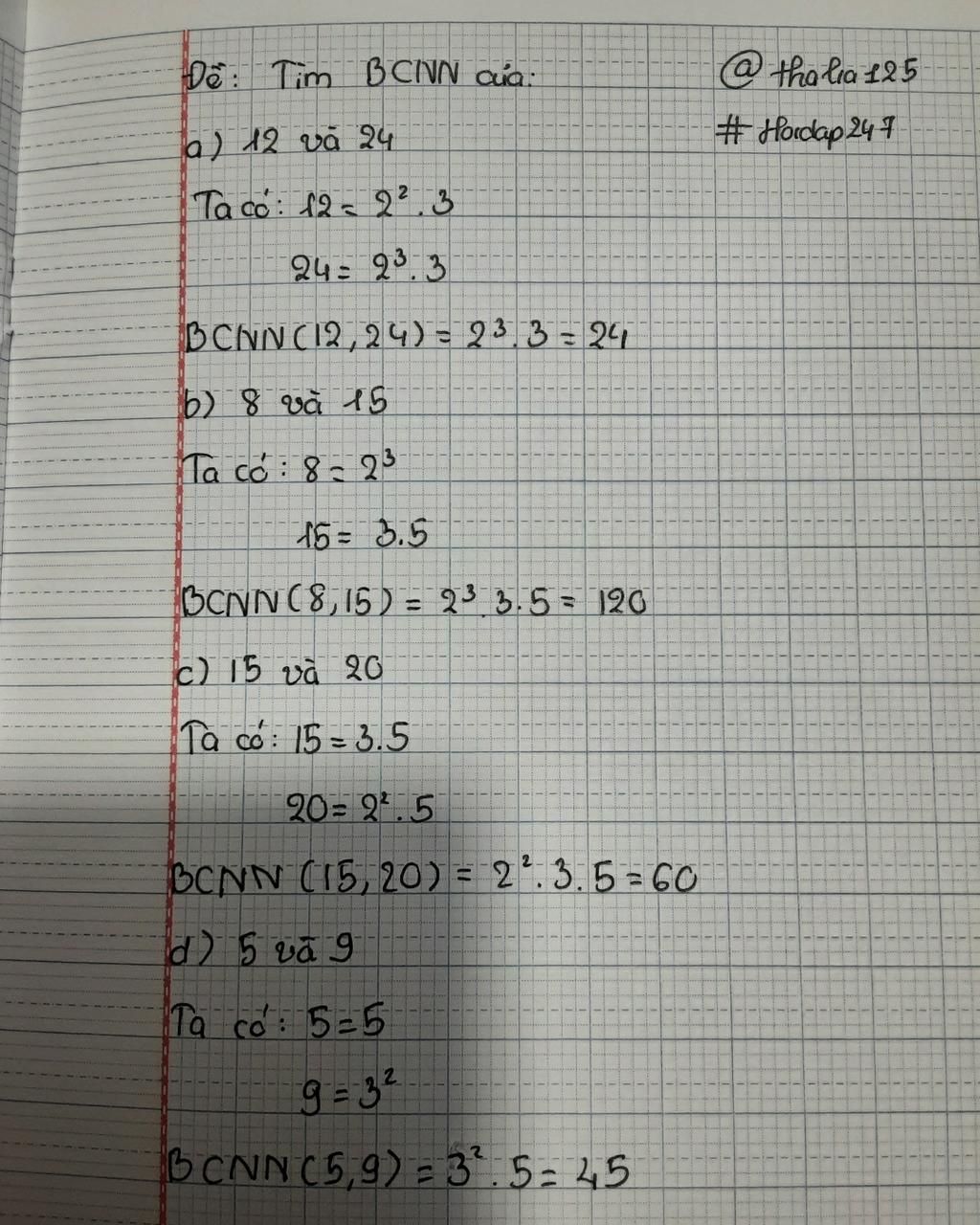 Bước `2` Tìm các thừa số nguyên tố chung và riêng.