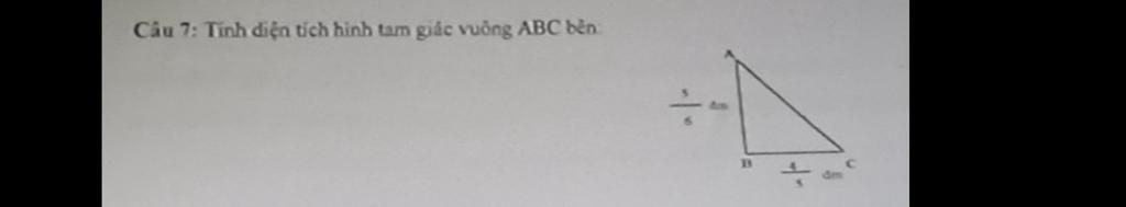 $S_{\text{ABC}}$ ` = 1/2 xx a xx b = 1/2 xx 5/6 xx 4/5 = 1/3(dm^2)`