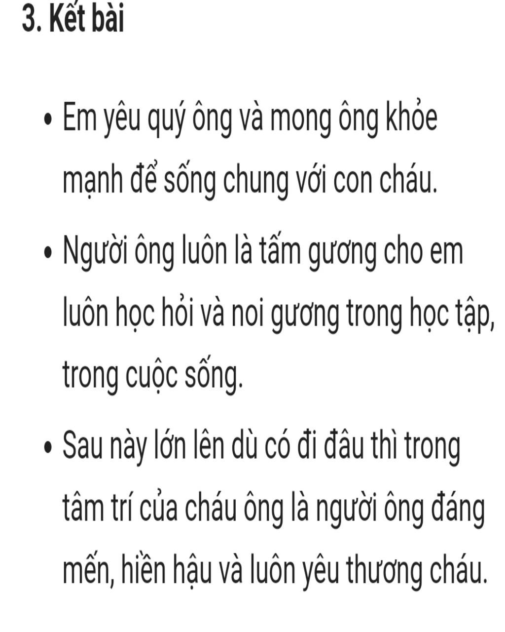 -:em yêu ông và mong ông sẽ khoẻ mạnh để sống chung với con chaú:đây là kết bài không mở rộng.