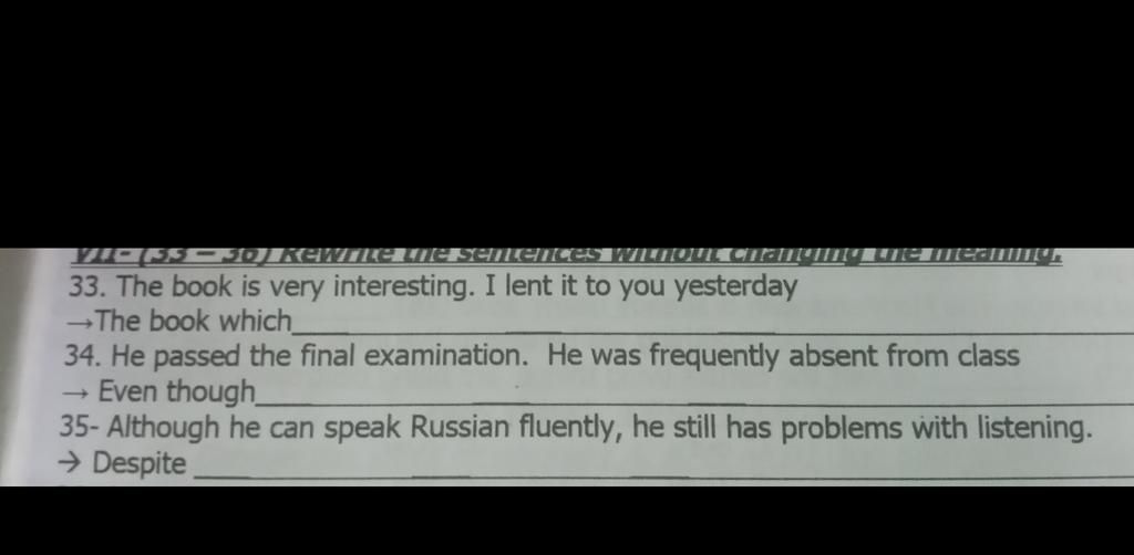 `34.` Even though he was frequently absent from class, he passed the final examination