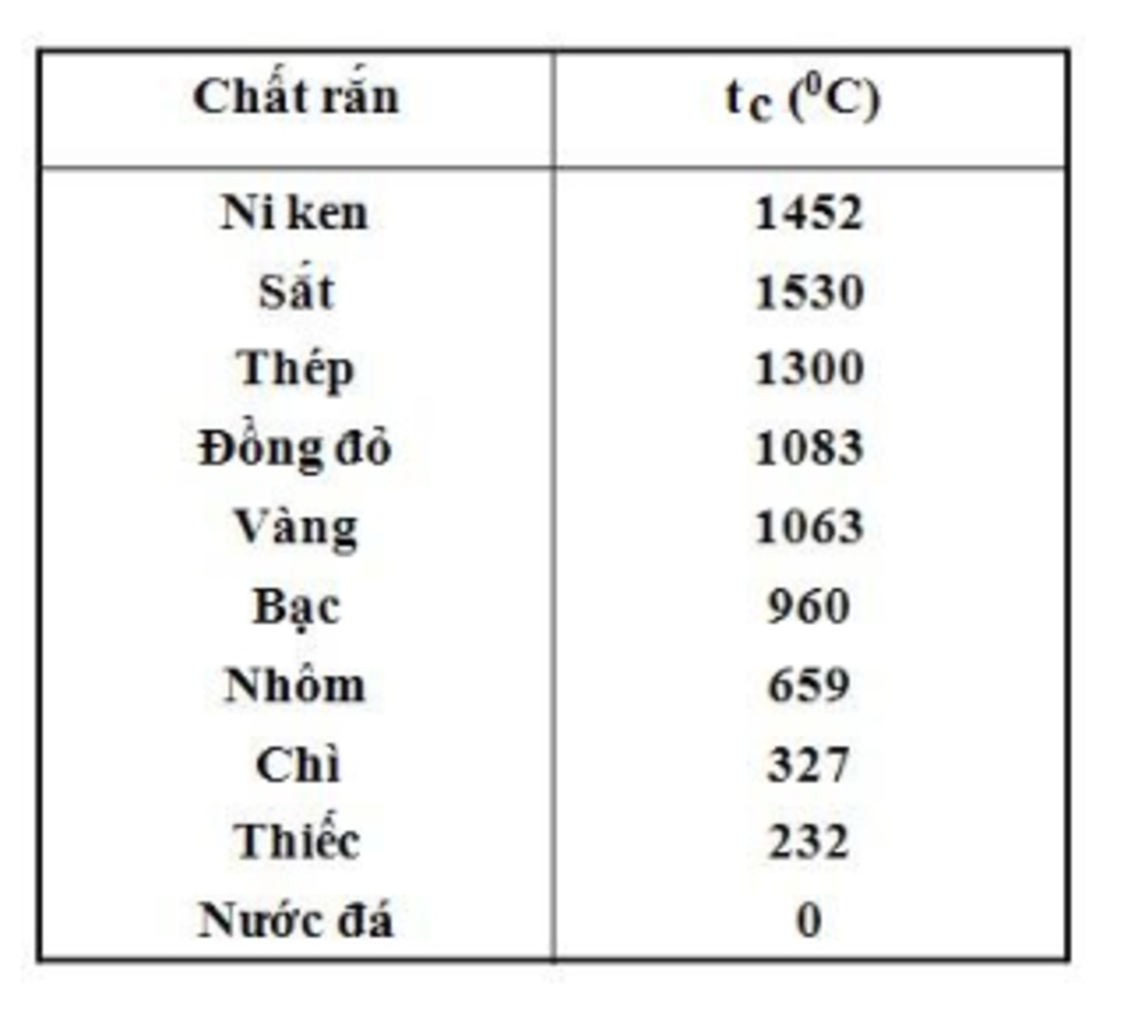 a) Thứ tự nhiệt độ nóng chảy tăng dần của các chất là: Nước đá, Thiếc,Nhôm, bạc, vàng, đồng đỏ, thép, Niken, sắt