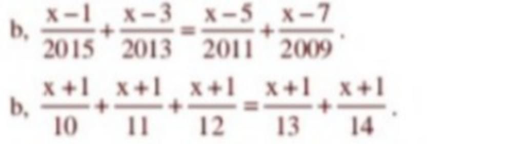 `b, (x - 1)/(2015) + (x -3)/(2013) = (x - 5)/(2011) + (x - 7)/(2009)`