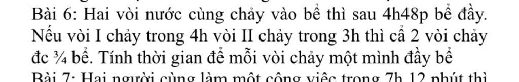 Hài vòi cùng chảy vào bể thì sau `4` giờ `48` phút thì đầy bể.