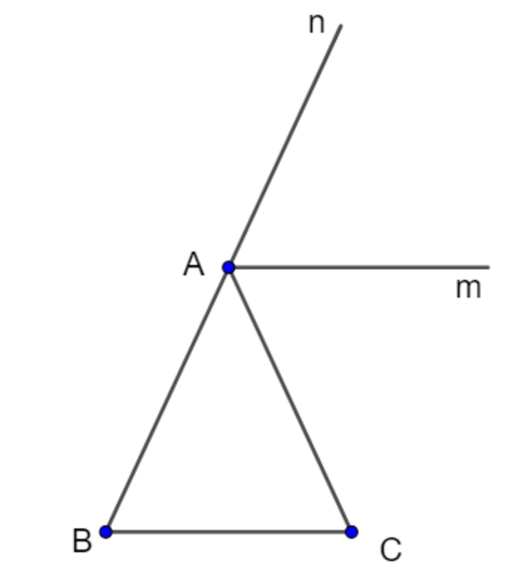cho tam giác ABC có B=65° ,C=65° .Vẽ tia Am song song với BC ,tia An là tia đối của tia AB và tia Am nằm giữa 2 tia An ,AC