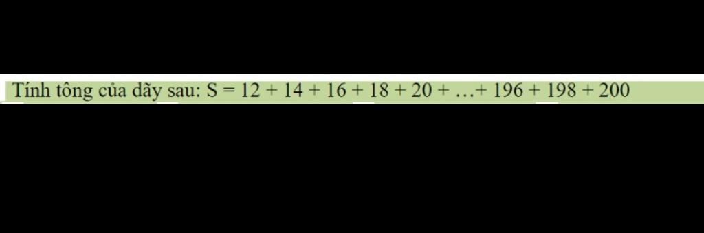 `S = 12 + 14 + 16 + 18 + 20 + .... + 196 + 198 + 200`