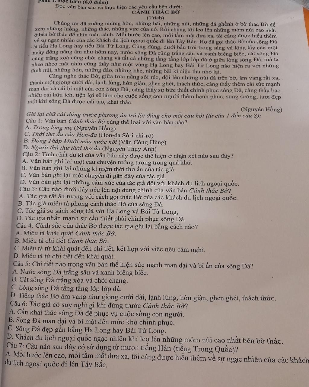 `->` Cảnh thác bờ thuộc thể loại du kí. Thời thơ ấu của Hon-đa, Người thủ thư hồi thơ ấu và Trong lòng mẹ thuộc thể loại hồi kí . Đồng Tháp Mười mùa nước nổi thuộc thể loại du kí.