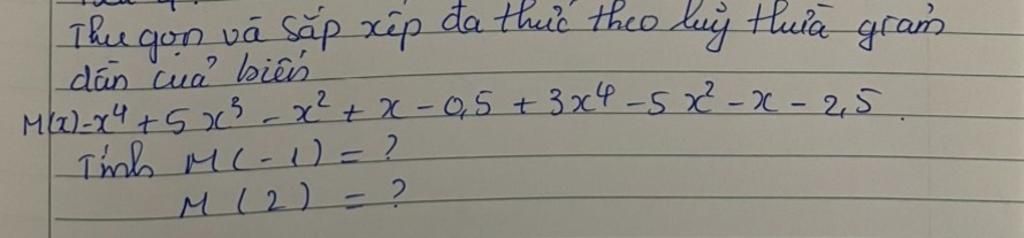 `M(-1) = 4.(-1)^4 + 5.(-1)^3 - 6.(-1)^2 - 3`