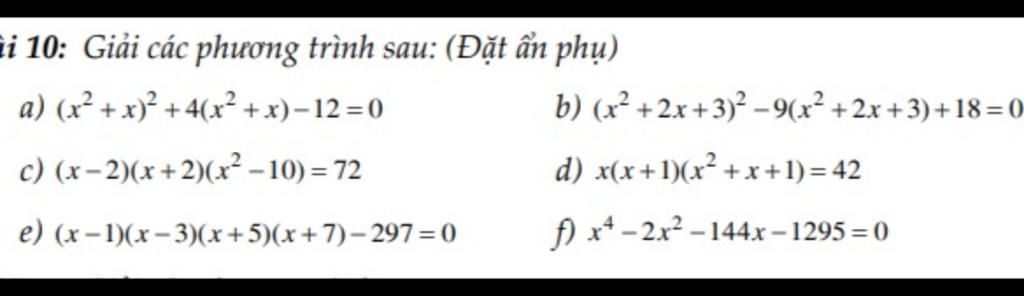 `b, (x^2 + 2x + 3)^2 - 9(x^2 + 2x + 3) + 18 = 0 (1)`