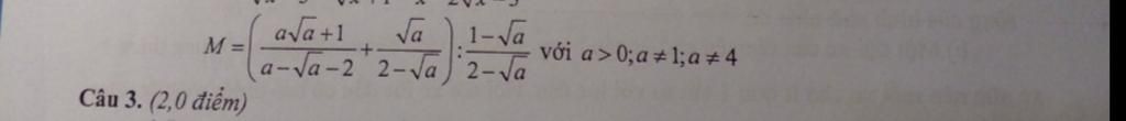 Vậy `M=sqrta-1` với `a>0` ; `ane1` ; `ane4`