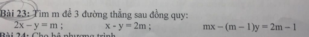Để `3` đường đồng quy thì ta thay `x=-m;y=-3m` vào `mx-(m-1)y=2m-1` có: