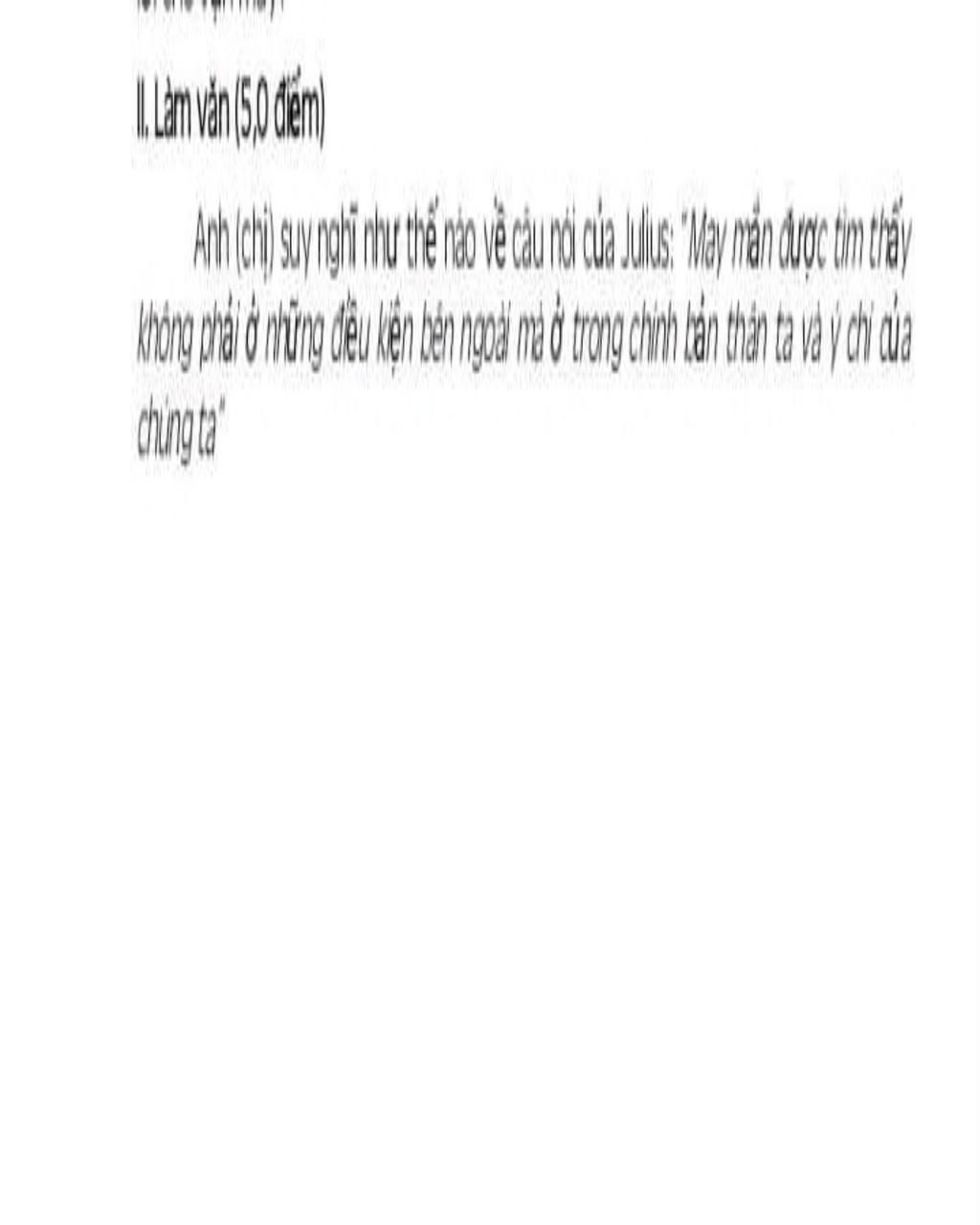 Anh (chị) suy nghĩ như thế nào về câu nói của Julius: may mắn được tìm thấy không phải ở những điều không ngoài mà trong chính bản thân ta và ý chí của chúng ta