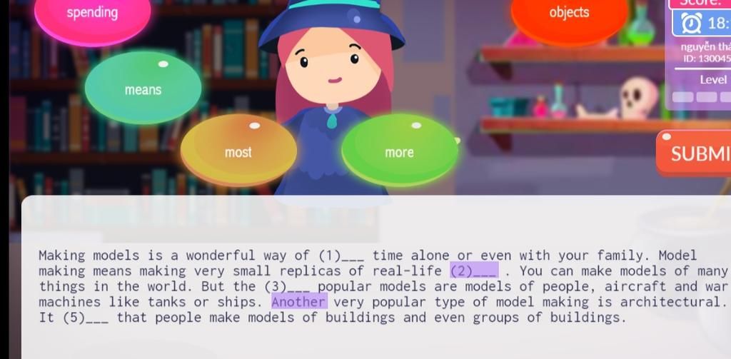 1. Making models is a wonderful way of (1)spending time alone or even with your family : Làm mô hình là một cách tuyệt vời để dành thời gian một mình hoặc thậm chí với gia đình của bạn