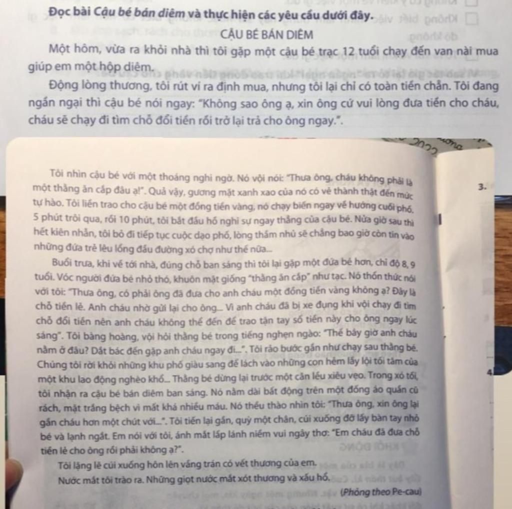 `+` Cảm thấy xấu hổ vì : Nhân vật "tôi"- người đàn ông đã nghĩ rằng cậu bé bán diêm là một "thằng ăn cắp " , không trả lại số tiền lẻ cho ông và gian dối , lừa dối ông .