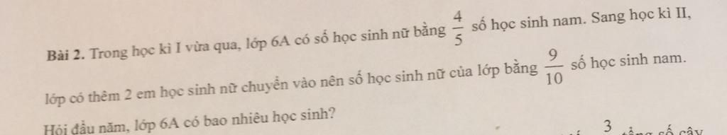 Bài 2. Trong học kì I vừa qua, lớp 6A có số học sinh nữ bằng