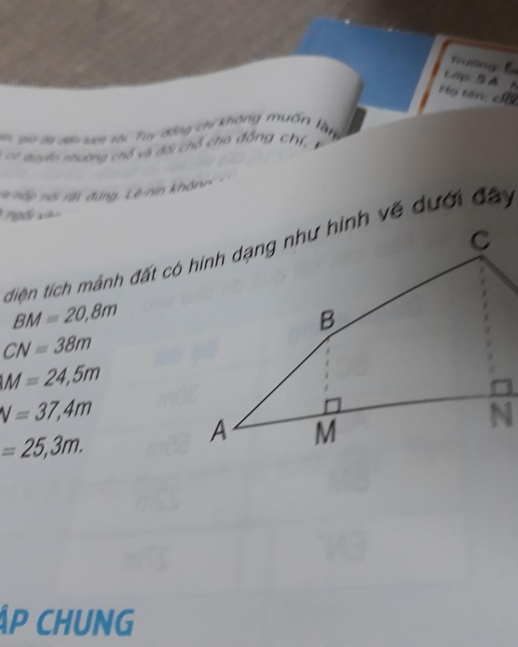 Tính diện tích mảnh đất có hình dạng nhuw hình vẽ dưới đây. Biết :