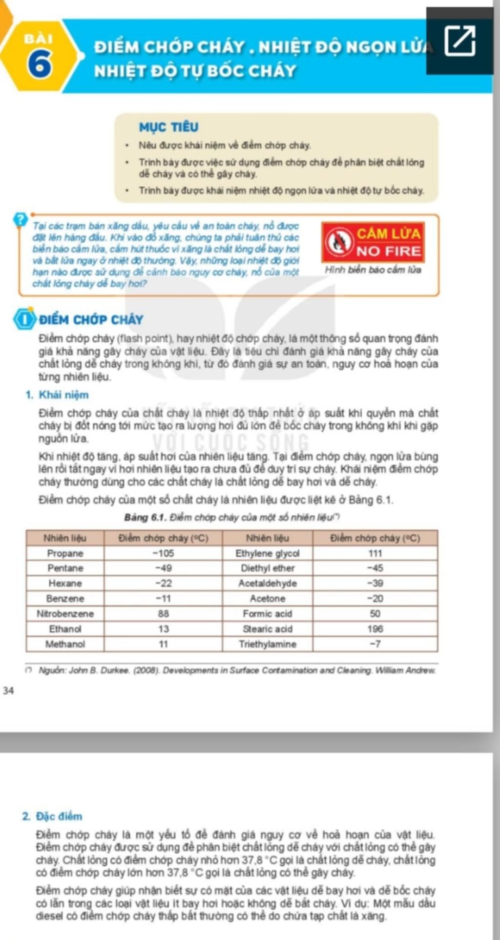 Nêu được khái niệm về điểm chớp cháy.