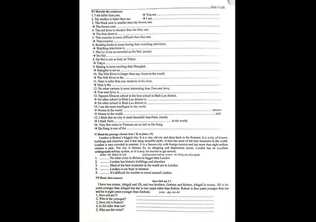 IV/ Rewrite the sentences: