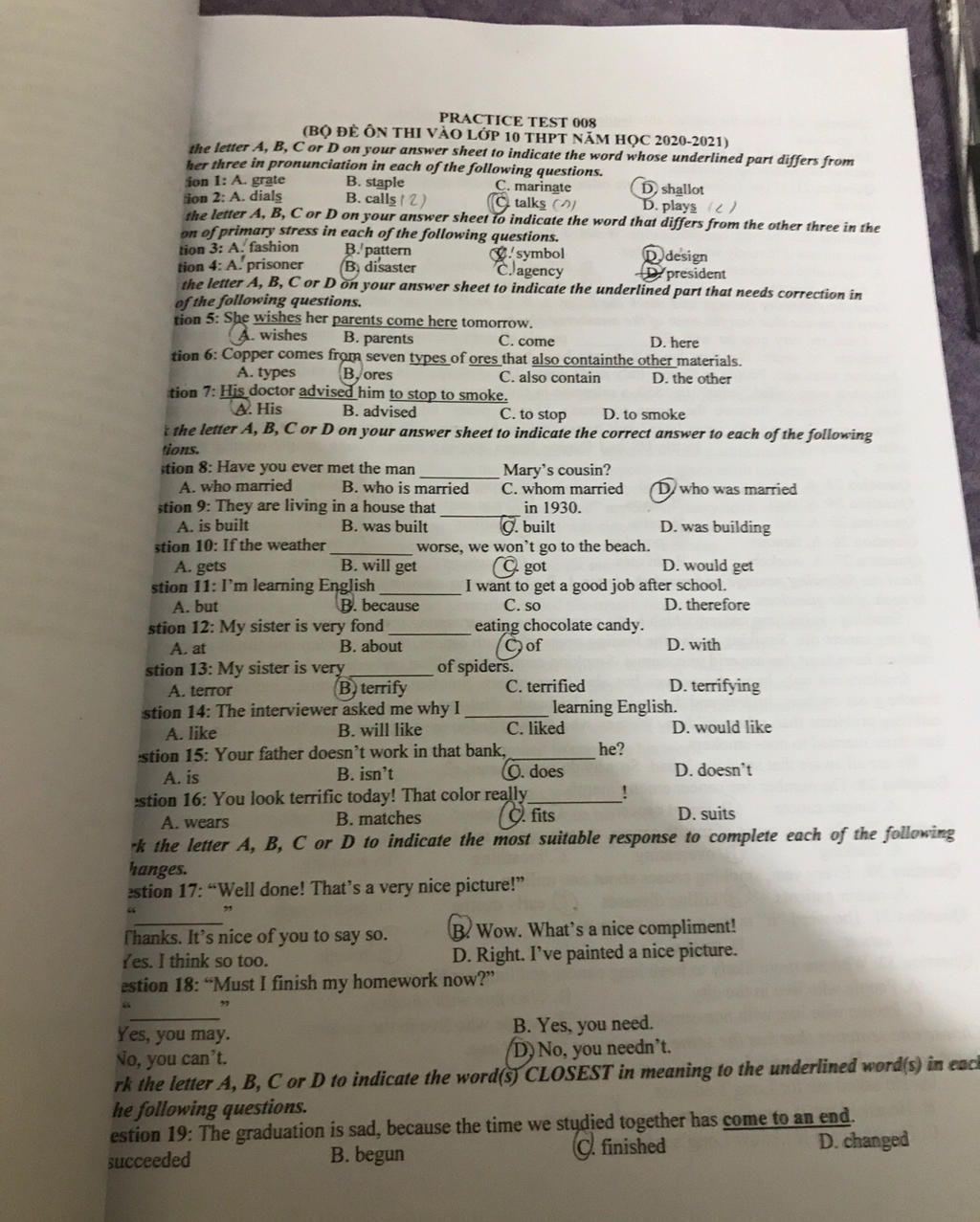 the letter A, B, C or D on your answer sheet to indicate the word whose underlined part differs from
