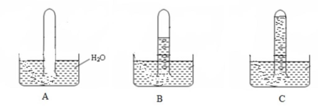 Khí \({O_2}\) không tan trong nước nên có thể thu khí \({O_2}\) bằng phương pháp đẩy nước nên hình A là của khí \({O_2}\)