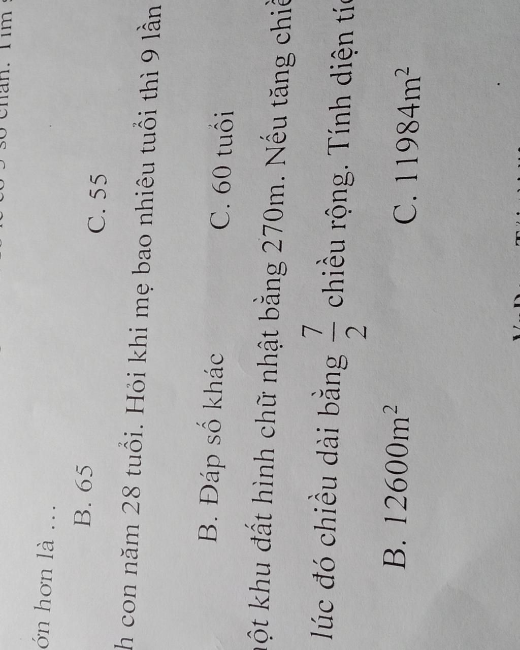 Mẹ sinh con năm 28 tuổi. Hỏi khi mẹ bao nhiêu thì 9 lần tuổi con bằng 5 lần tuổi mẹ.