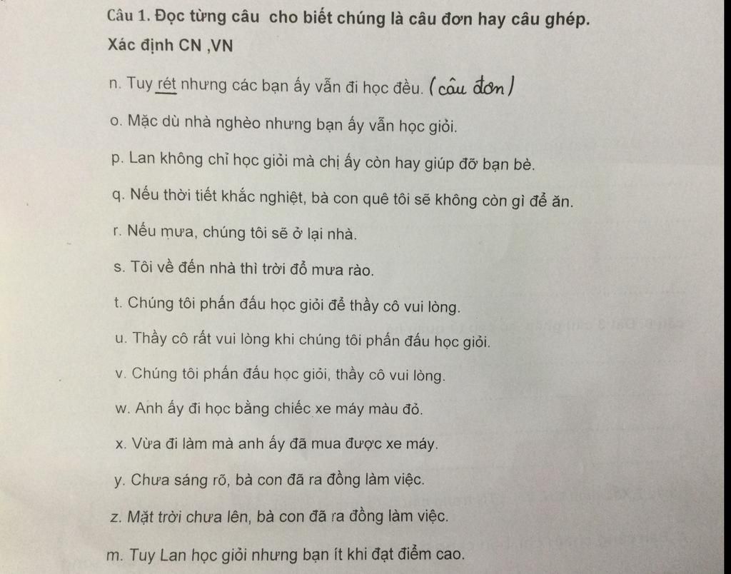 m Tuy Lan/ học giỏi nhưng bạn/ ít khi đạt điểm cao: ghép