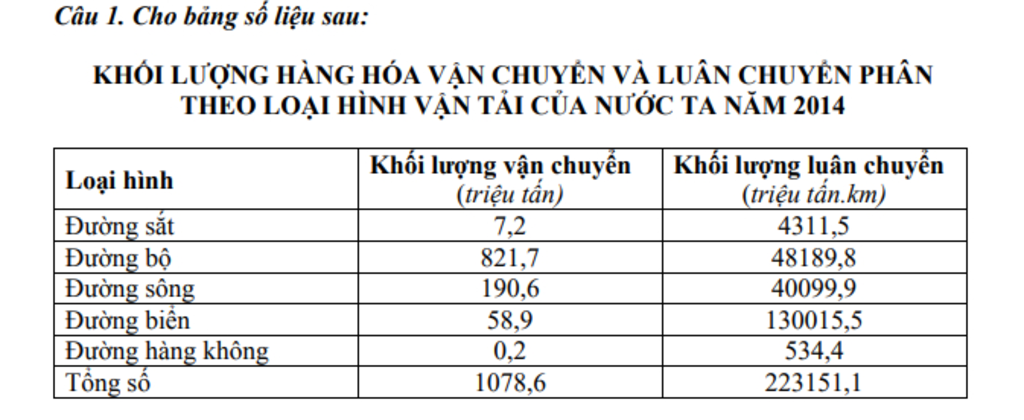 THEO LOẠI HÌNH VẬN TẢI CỦA NƯỚC TA NĂM 2014