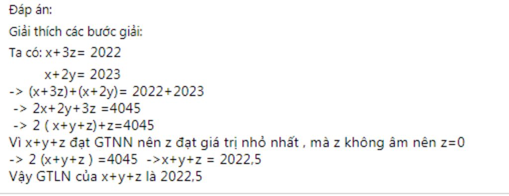 Vậy `P_(max) = 2022,5<=> z = 0 ; x = 2022 ; y = 0,5`
