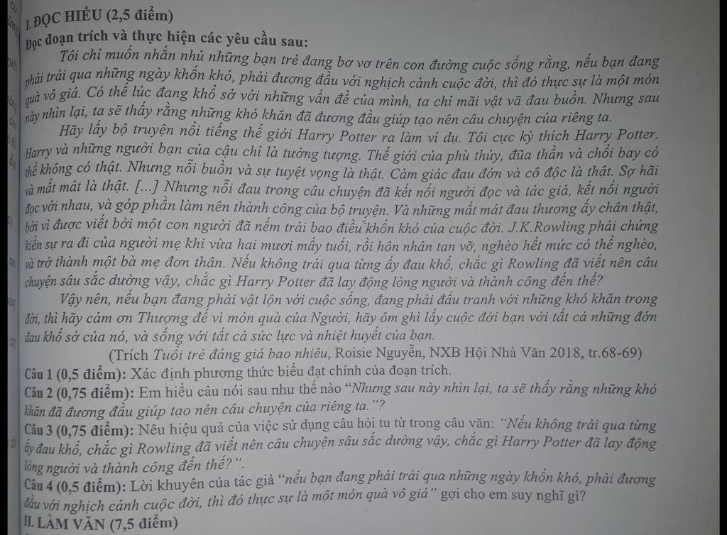 Câu $1$. Phương thức biểu đạt chính nghị luận.