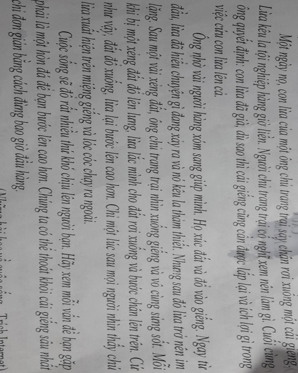 $\\$`⇒` Hãy thông minh trong mọi tình huống, cố gắng vượt qua mọi khó khăn. Đừng bỏ cuộc, không nên nhìn theo mặt tiêu cực, nghĩ mình sẽ thất bại và từ bỏ. Ngược lại, hãy hướng về mặt tích cực, nếu chúng ta còn hy vọng, còn hai bàn tay, còn thân thể quý giá của trời đất tạo nên thì bằng chính mình và sự kiên nhẫn, sự cố gắng, ý chí quyết tâm ấy, chúng ta sẽ vượt qua mọi khó khăn, không gì có thể bắt chúng ta phải chịu thất bại.