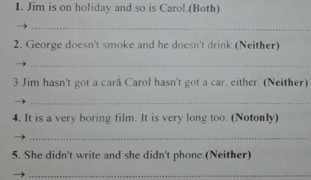 3 Jim hasn't got a cară Carol hasn't got a car, either. (Neither)