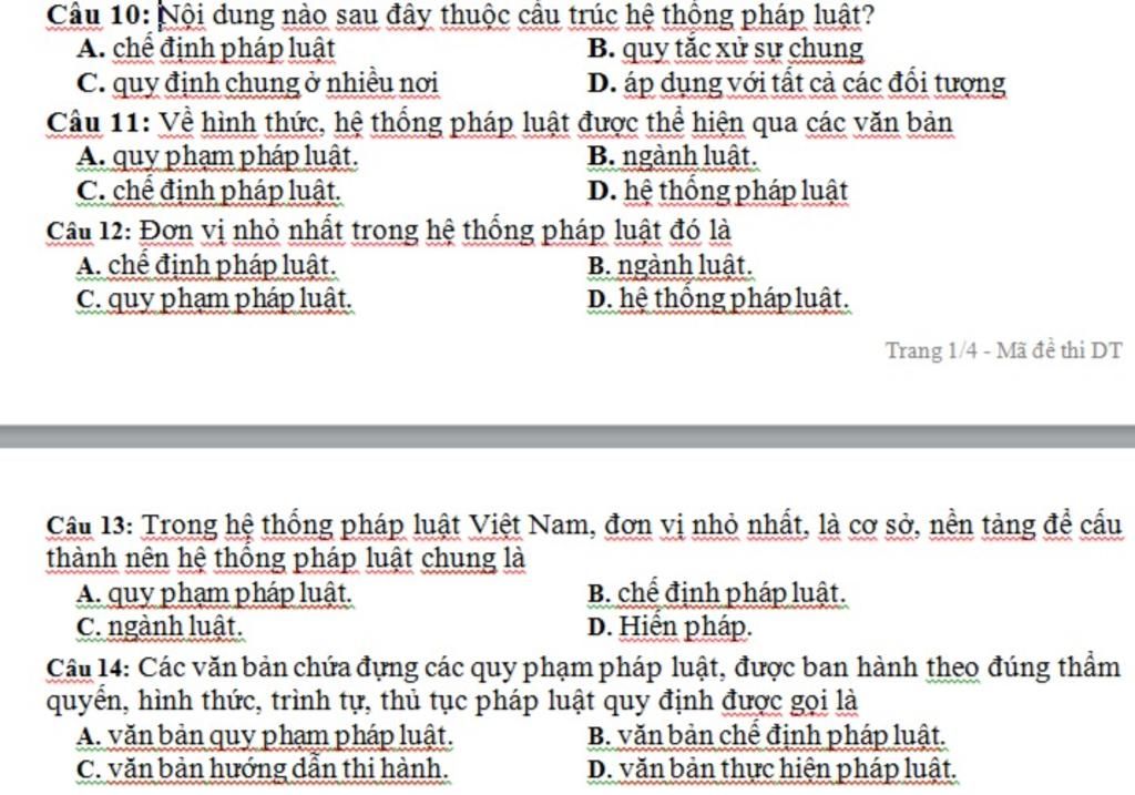 `-` Cấu trúc hệ thống pháp luật gồm : các ngành luật, các chế định pháp luật, và các quy phạm pháp luật.