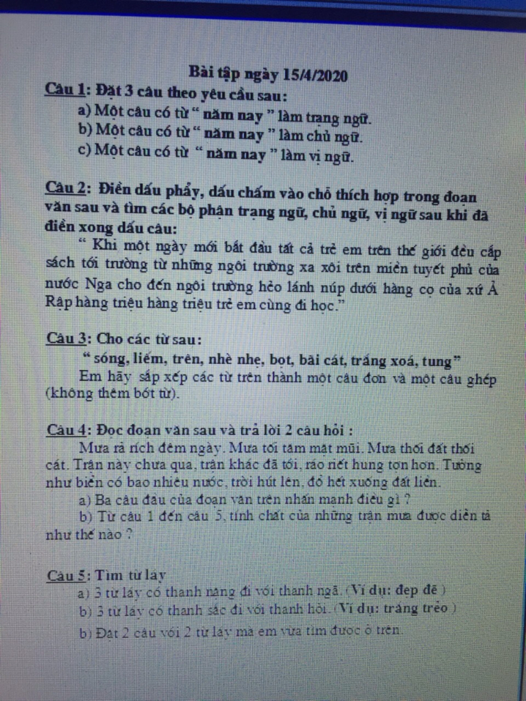 b) Một câu có từ “ năm nay " làm chủ ngữ.