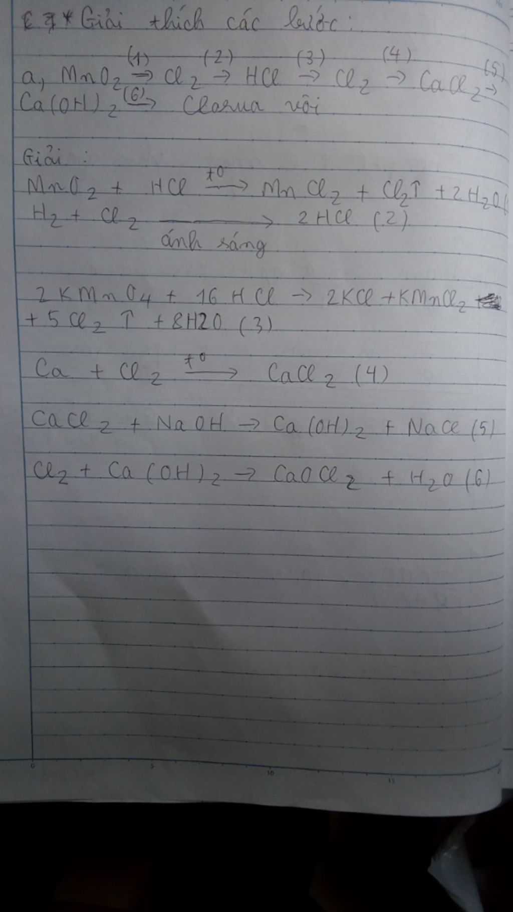 MnO2 + 4HCl đặc → MnCl2 + Cl2 + 2H2O