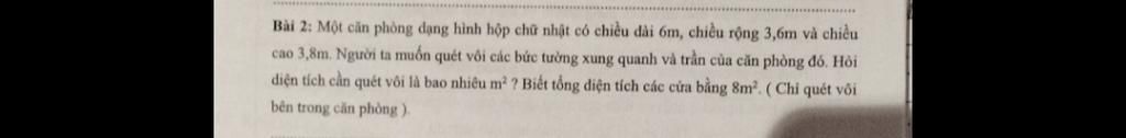 Diện tích xung quanh của căn phòng có hình hộp chữ nhật là: