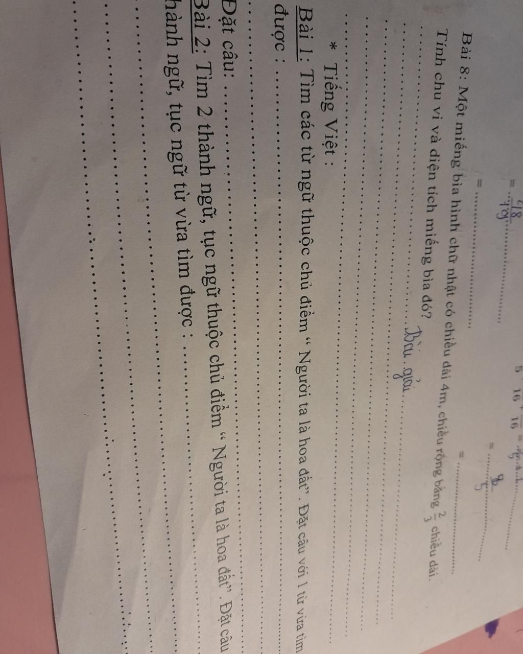 Chiều rộng miếng bìa đó là: