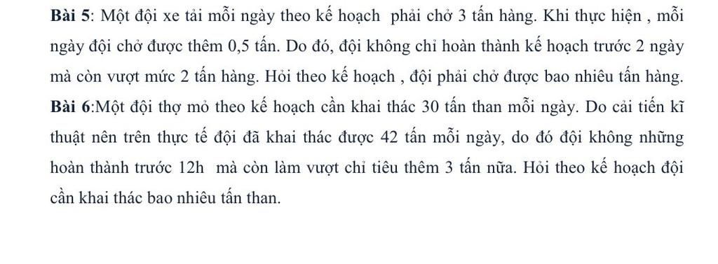 mà còn vượt mức 2 tấn hàng. Hỏi theo kế hoạch , đội phải chở được bao nhiêu tấn hàng.