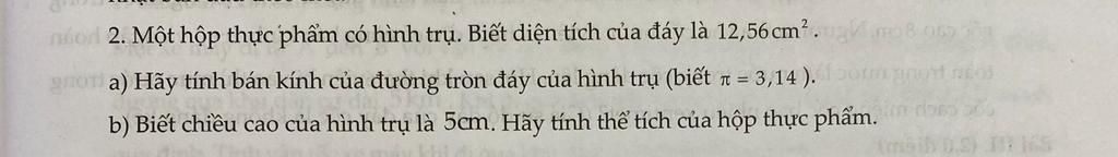 a) Bán kính cua đường tròn đáy hình trụ là: